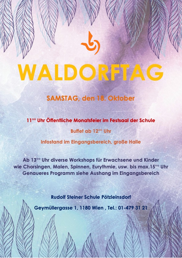 Samstag, 18. Oktober Schulsamstag mit Monatsfeier, Waldorf-Tag