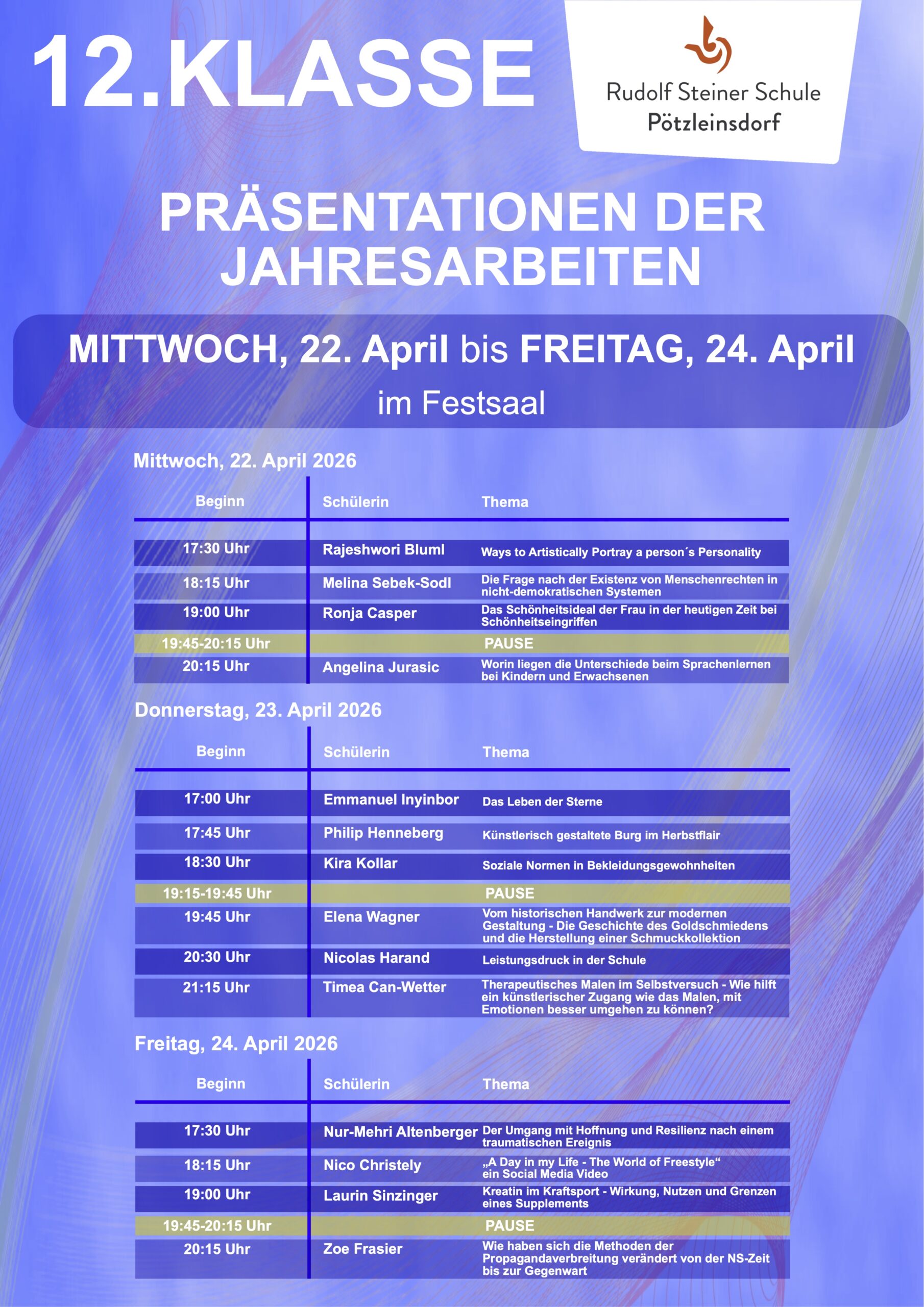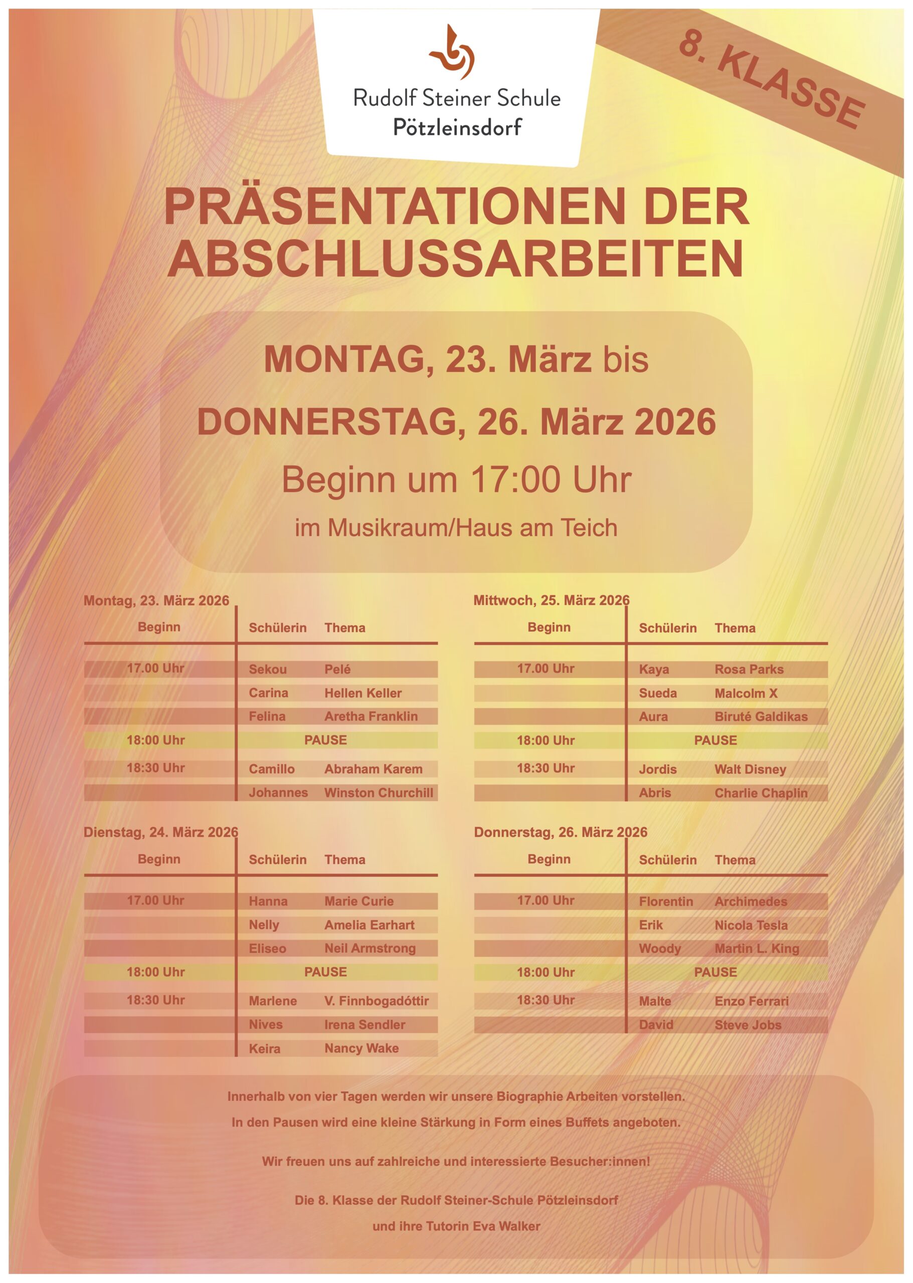 Mittwoch, 10. Juni Aufnahmegespräche/Schuleintritt im September 2026